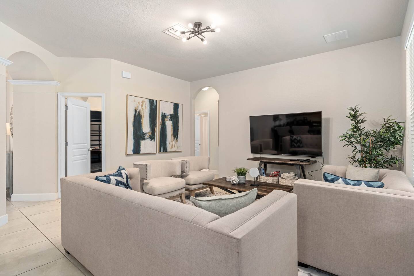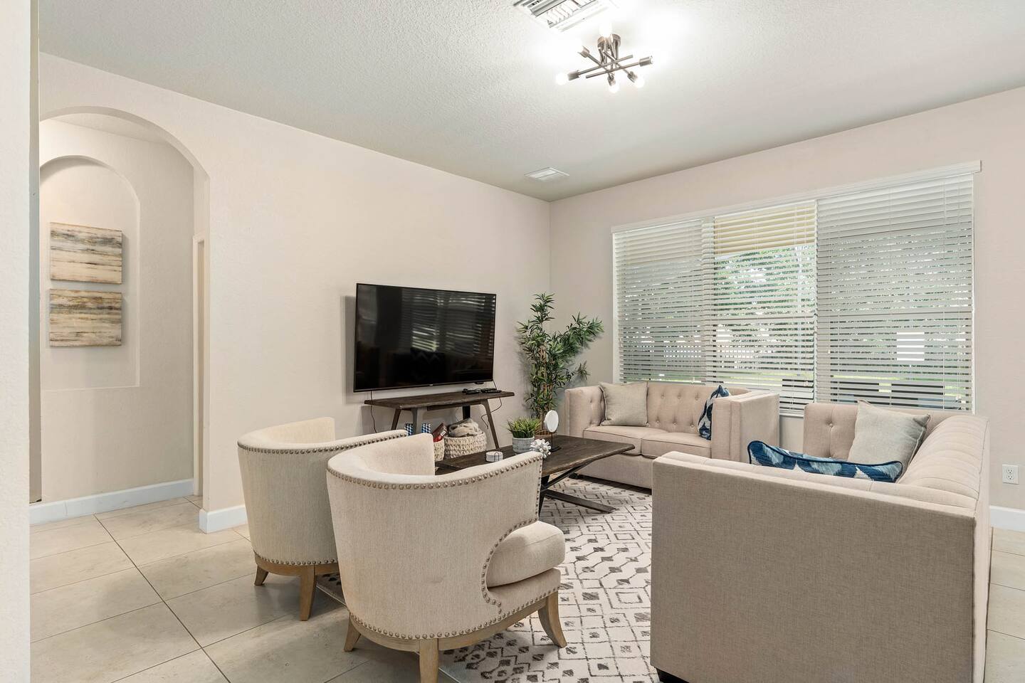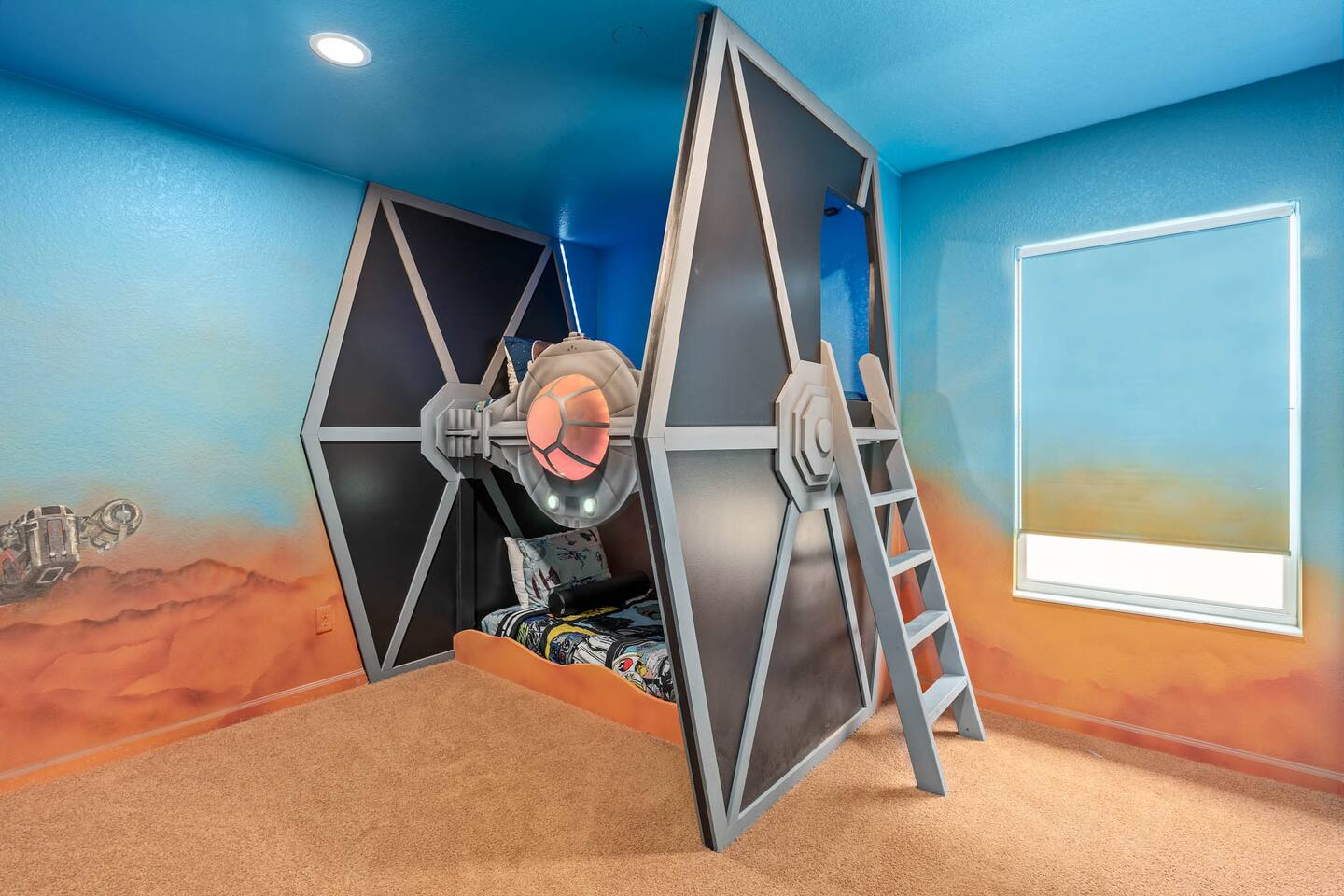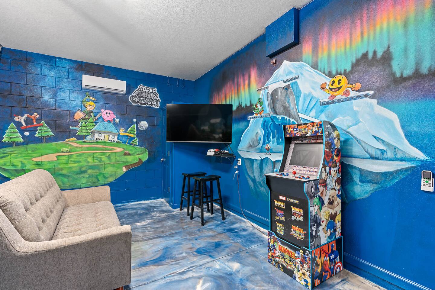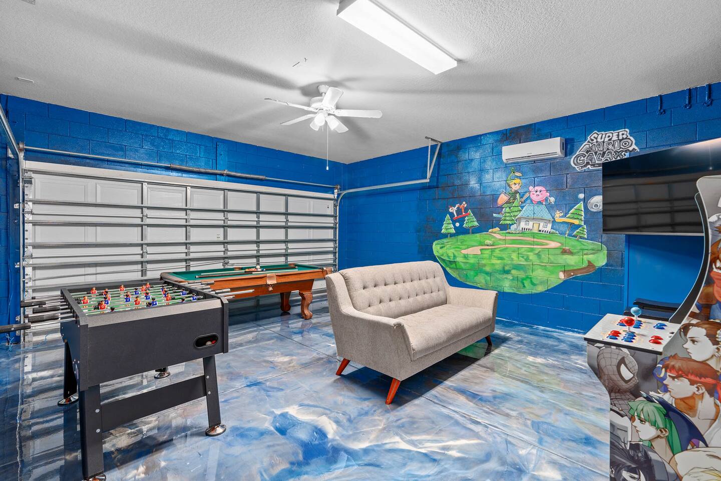 LOCATION ★ 2.5mi to Disney, the closest neighborhood outside of actual Disney hotels ★ 15mi to Universal studios FREE ACCESS TO WINDSOR WATERPARK/RESORT ★ 0.5mi away ★ Waterslides ★ Kids splashpad ★ Movie Theater ★ Fitness center ★ Business center ★ Tennis, Basketball, Volleyball, Ping Pong, Tot Lot, & Recreation Park Your booking with us comes with free access to all of those amenities for you and your entire group! We also have an incredible Game Room right IN THE HOME! This is your private game room, and it includes... ★ Pool Table ★ Foosball Table ★ Arcade Cabinet with 1500 games pre-loaded on it ★ Game Consoles - Xbox One and PS4 (bring your own login/games) ★ Smart TV Themed, custom built kids bedrooms, Star Wars and Moana. Each of the 6 bedrooms have their own PRIVATE SMART TV! Our villa has a private pool/spa with pool heat available for $30/day. Pack n Play and high chair can be provided at no cost!