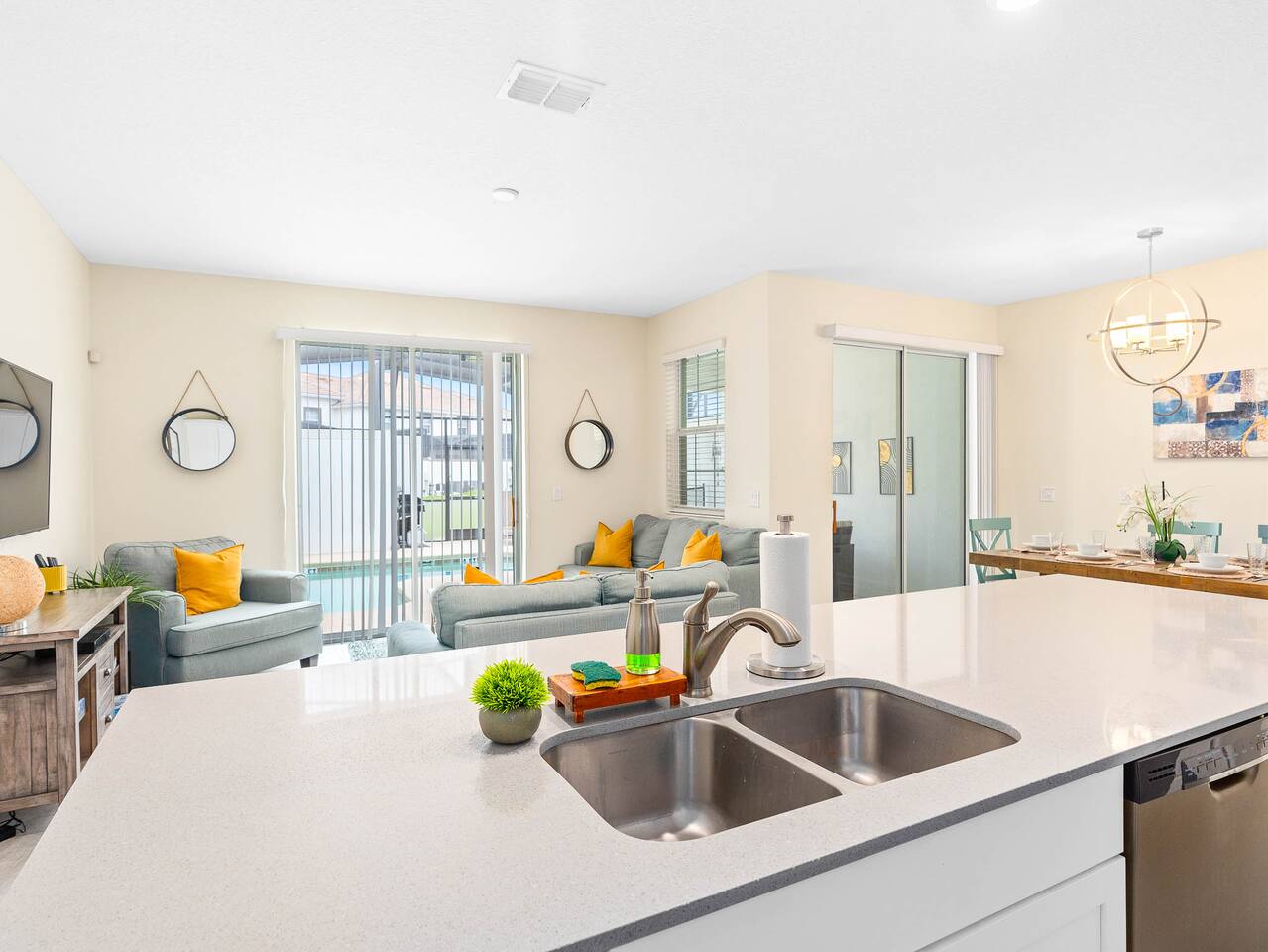 Relax in this Stylish Modern Bungalow just minutes from Disney World! ✓ Minutes to Disney ✓ Private Heated Pool ✓ Grill (small fee) ✓ Tasteful modern decor ✓ Walkable to the Oasis Clubhouse The following Amenities are included a short walk away, at no additional cost ✓ Waterslides ✓ Lazy River ✓ Theater ✓ Arcade ✓ Mini Golf ✓ Splash Pad Carefully put together for your enjoyment. With quality furniture throughout, this Stylish Modern Retreat sleeps up to 10.