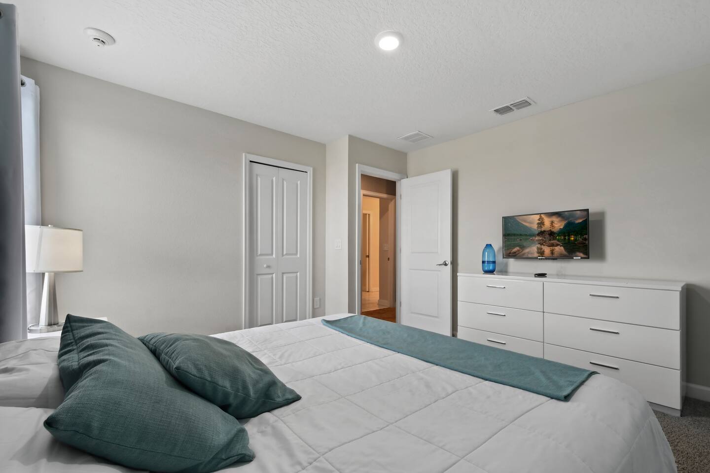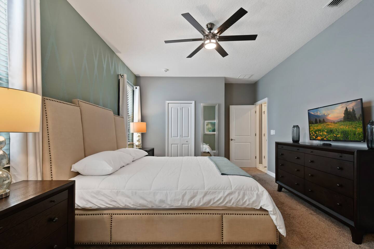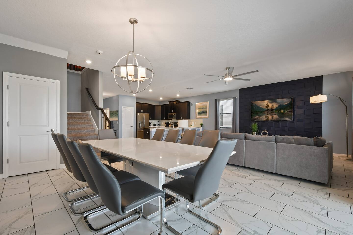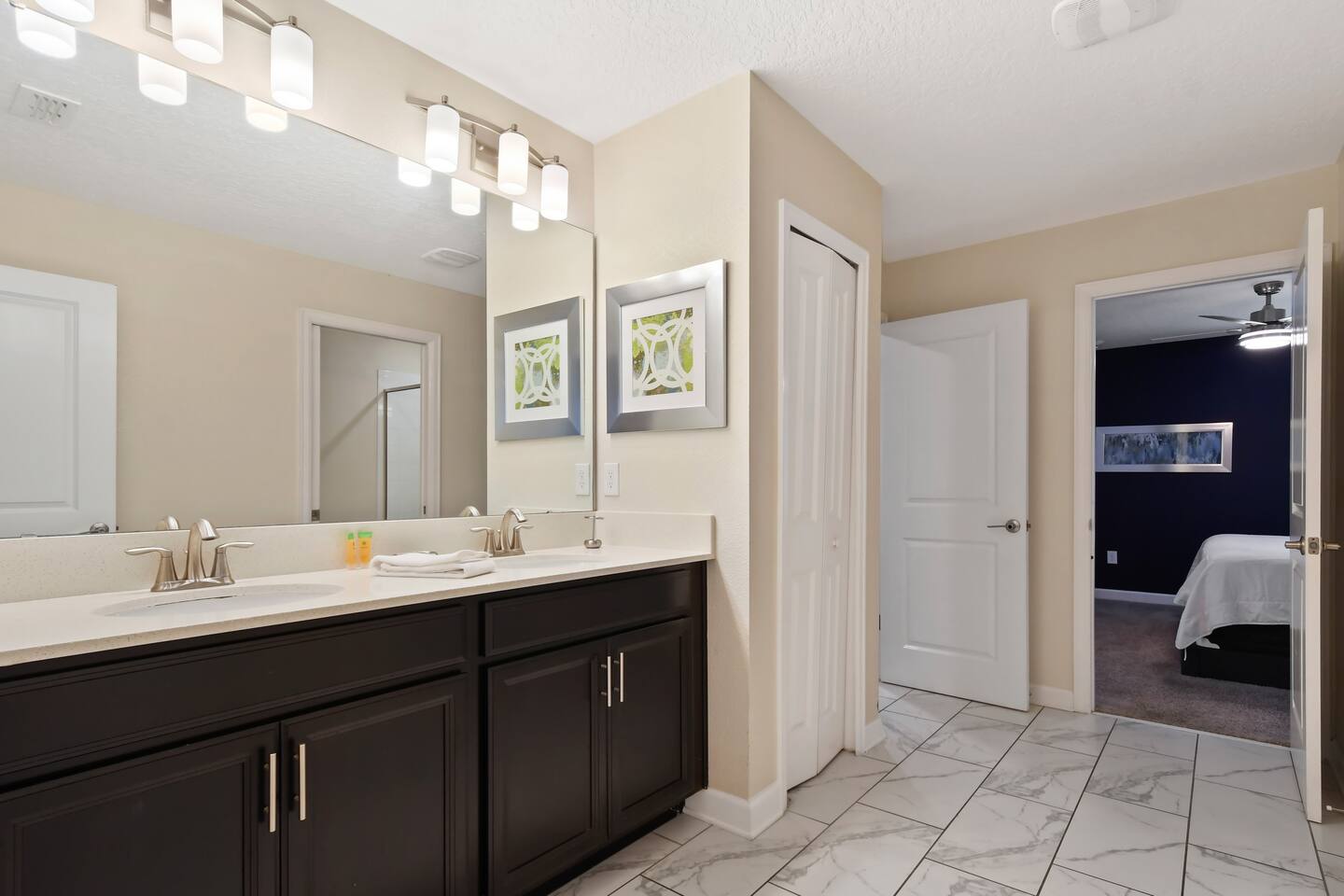 Jordan and Shelby Beck's home is the perfect home base for visiting Disney and Universal! This 9br/5ba Storey Lake home sleeps 28 comfortably. The fun never ends! Relax in the private pool/spa with lake view or let the fun continue in the home theater with 100in projection screen, the Guardians of the Galaxy theme room, the Moana Theme room, and of course, arcade games!