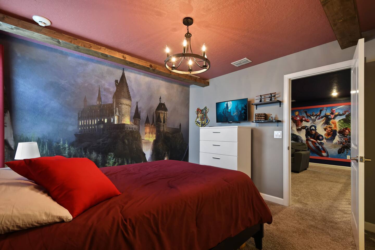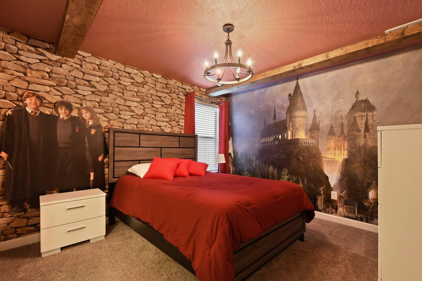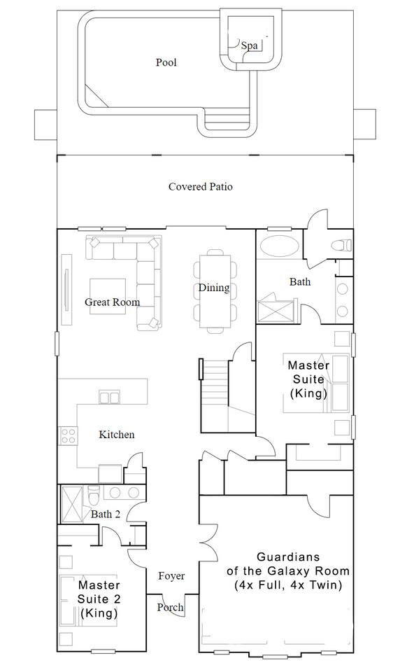 GUARDIANS OF THE GALAXY PLAYROOM The fun doesn't stop at the new Epcot ride. Bring it home in the unique Guardians of the Galaxy game and bedroom complete with arcade rooms and slides. MOANA ROOM Sleep in a magical Tiki Hut and hang with Maui and Moana. HARRY POTTER ROOM The bravest of the bunch are fit to sleep in the Gryffindor common room! LAKEVIEW POOL/SPA Private pool and spa with screened lanai overlook a beautiful lake view. Pool heat is available for $30/day GAMES Arcade games and Xboxes (bring your own login) abound to keep the kiddos entertained while the adults get some much deserved R&R. Or join in on the games yourself! EASY TRAVEL Pack n' Play and High Chair included RESORT ACCESS Your booking includes free access to the Storey Lake Hideaway club, with fun amenities like kayaking, mini-golf, a lazy river, waterslides, and much more! PETS Pets are not allowed Villa has an external video doorbell.