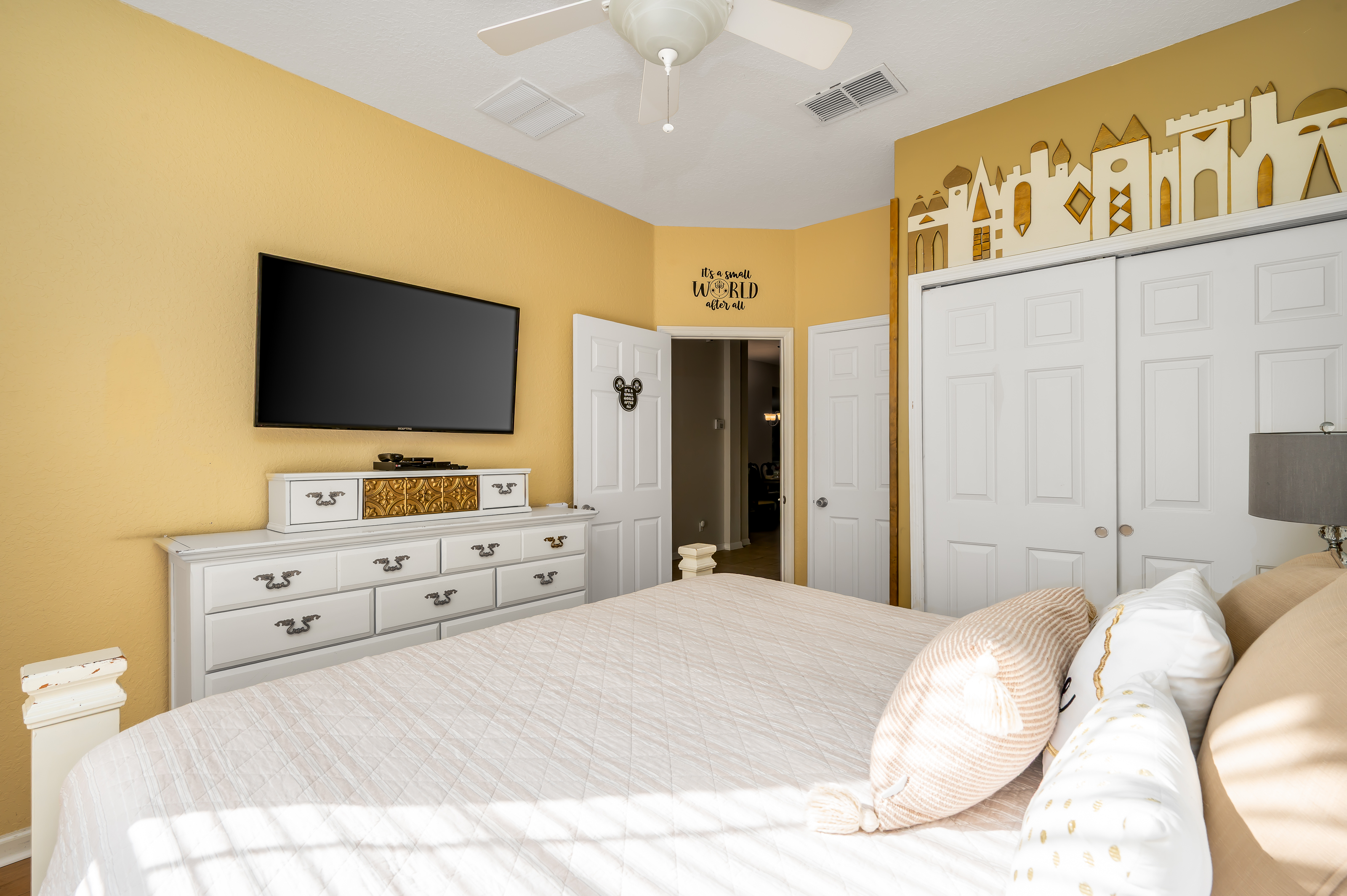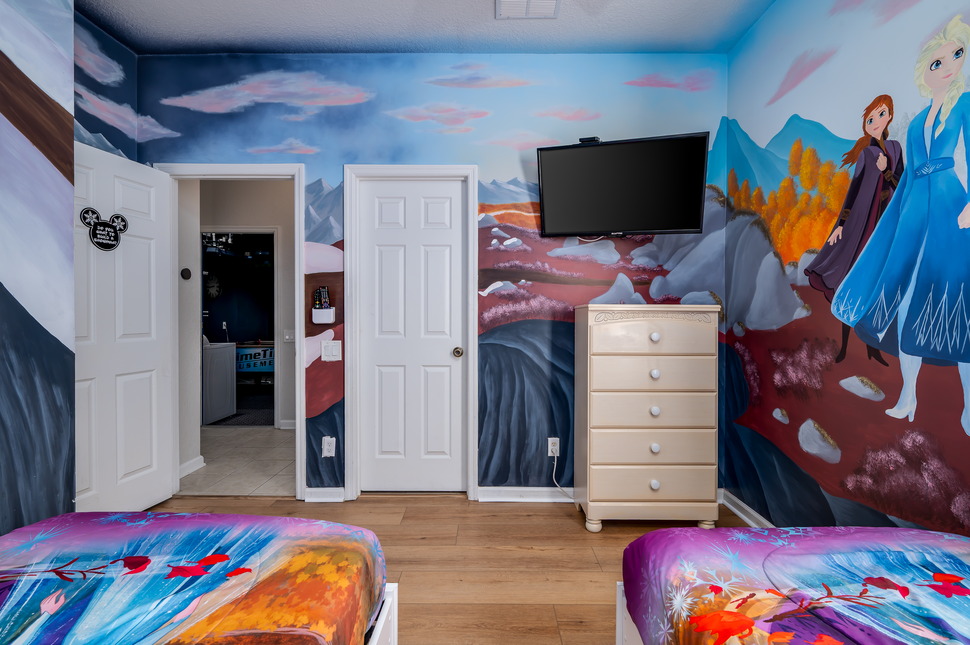 📍 Location Highlights • 3 miles to Disney World • 0.4 miles to Windsor Hills Resort amenities • 15 miles to Universal Studios • 22 miles to Orlando International Airport (MCO) ✨ Why You’ll Love It • Prime Location – Easy access to Orlando’s top attractions. • Private Game Room – Features commercial-grade games, all set to free play for endless fun. • Private Pool & Spa – The perfect place to relax after a long day. Optional pool heating available. • Resort Access Included – Enjoy FREE Windsor Hills amenities like water slides, lagoon-style pool & more! 🏡 The Space This spacious villa sleeps up to 8 guests and is designed for comfort and entertainment. • 4 Bedrooms, 4 Bathrooms – Plenty of space for everyone • 2 King Beds • Themed Kids’ Bedrooms – "It's a Small World" and "Frozen" rooms perfect for kids and kids at heart • Every bedroom features its own TV • Comfortable Living & Dining Areas – Relax with family after a day of adventures • Washer & Dryer – Available for guest use 🎮 Private Game Room Step into your own personal arcade, featuring commercial-grade games set to free play for non-stop entertainment. 🏊♂️ Private Pool & Spa Unwind in your private pool and spa — the ideal way to relax after a long day at the parks. Optional pool heating available for $30/day (3-day minimum). 👶 Family-Friendly Amenities Complimentary baby gear is available so you can pack light! • Pack 'n Play • High Chair 🌴 Windsor Hills Resort – Free Access! Enjoy full access to top-tier resort amenities just a short walk away: • 🌊 Water Slides & Lagoon-Style Pool • 🎬 Movie Theater & 💪 Fitness Center • 🏀 Sports Courts, Putting & Chipping Green • 🎱 Pool Tables & Game Lounge ✨ Experience the magic of staying near Disney! 🏰🌟