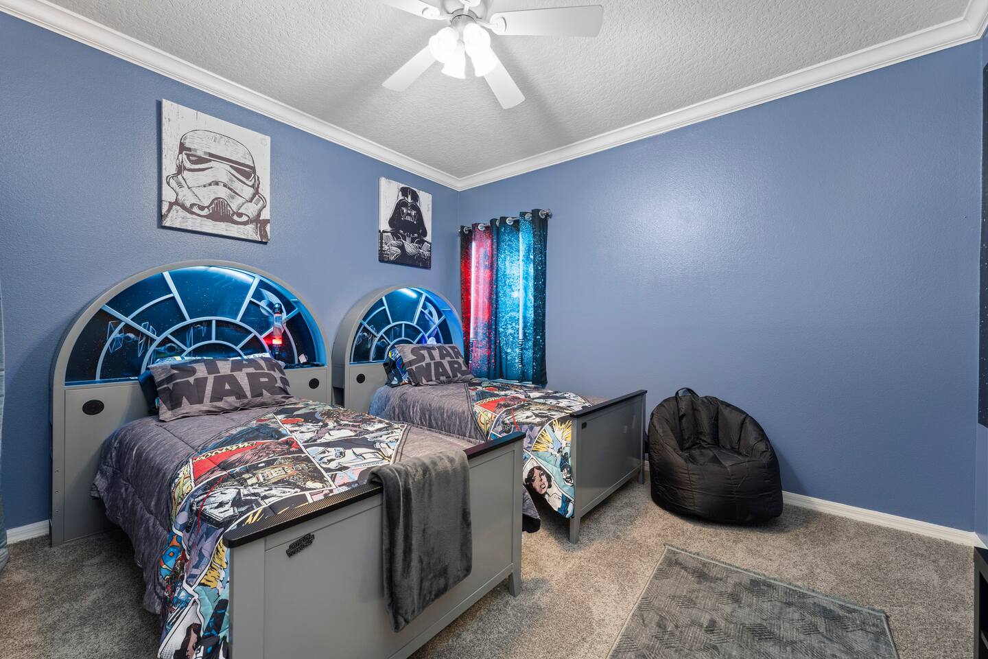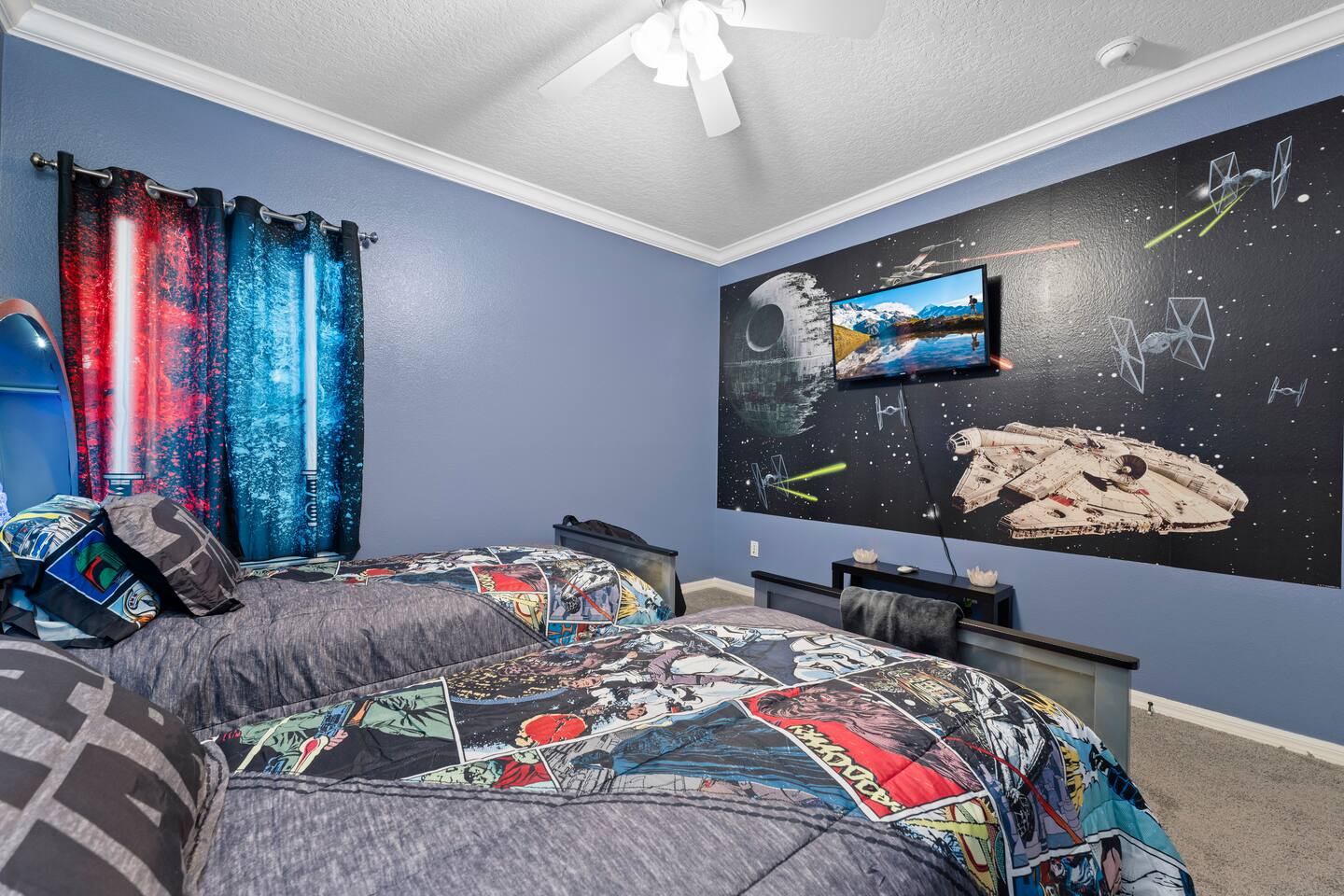 Relax in Reunion, just a short drive to Disney. Enjoy lounging on the pool deck by the warm south facing pool, watching the game on the outdoor TV, and grilling up some dinner while the kids have fun in the themed kids rooms. Then retire to your spacious master suite with comfy king bed before another fun day at the parks!