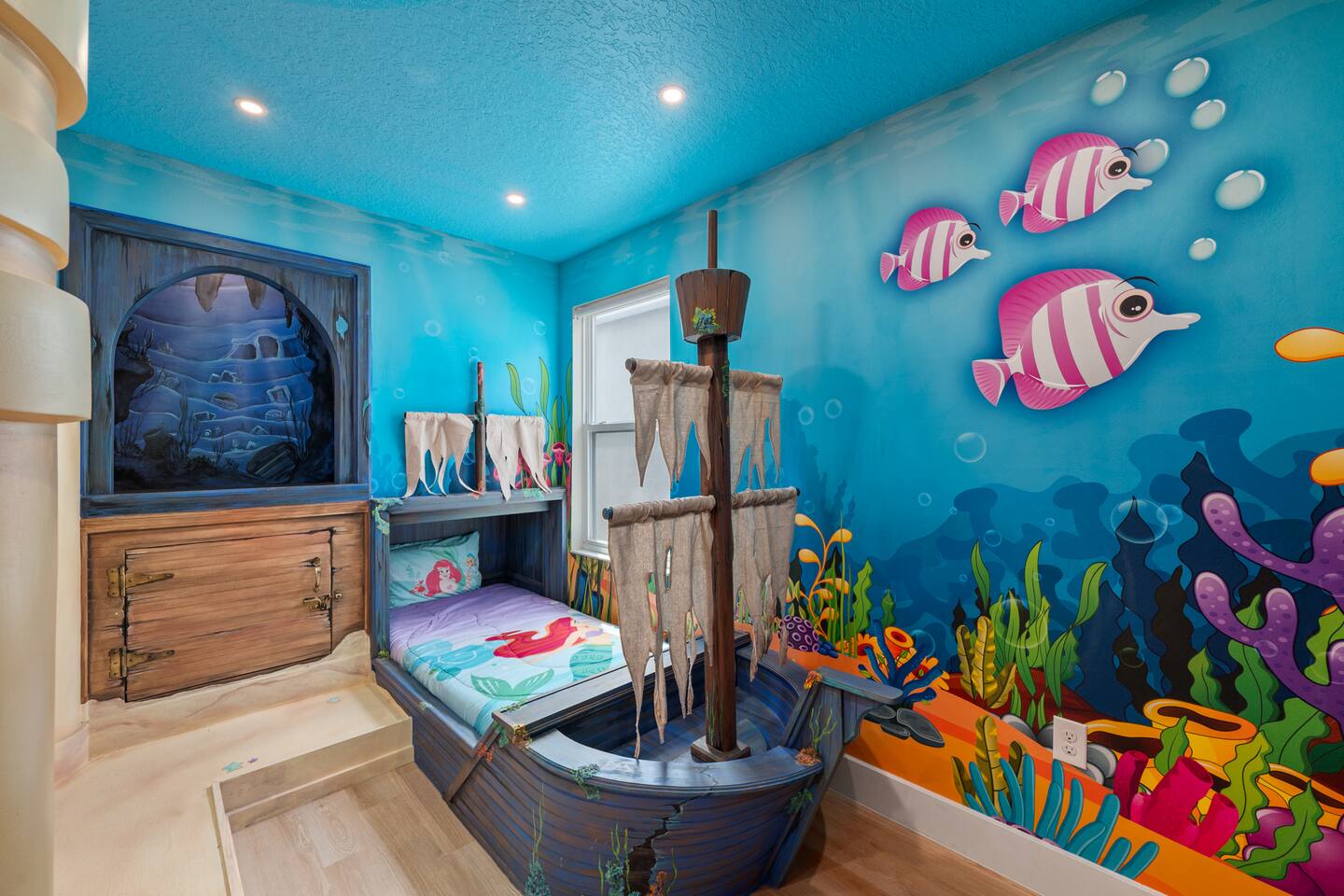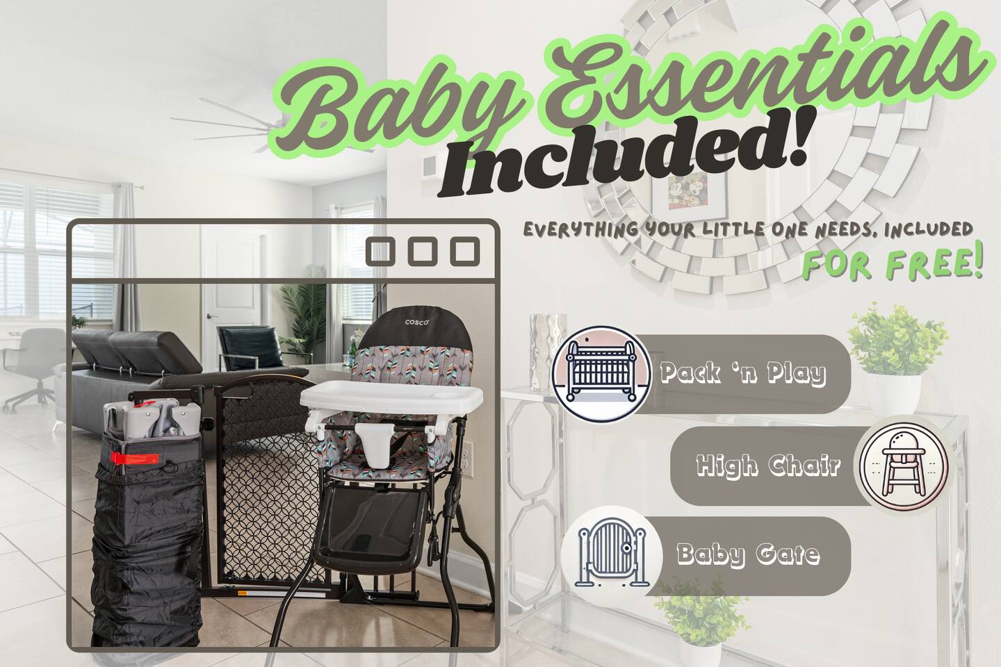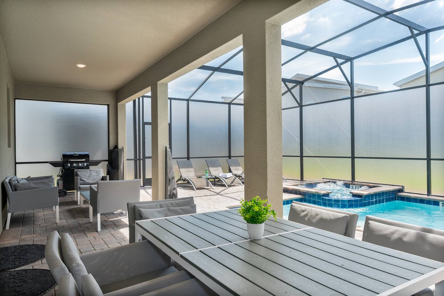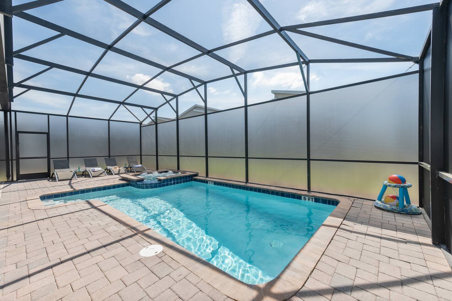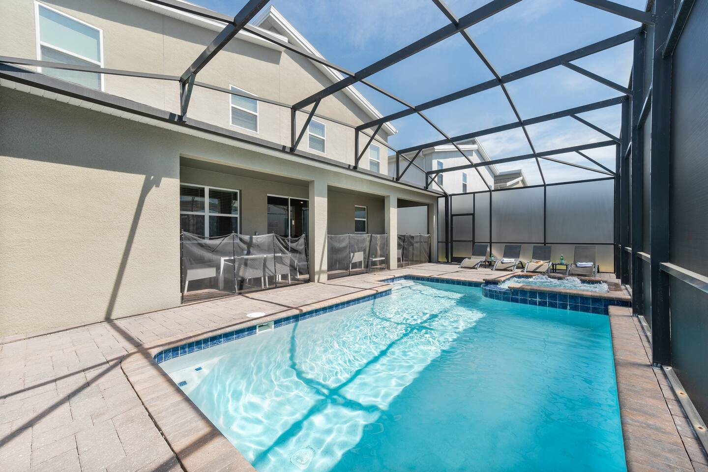 The kids will love the two incredible themed rooms with a SECRET PASSAGEWAY between them. They'll be talking about it for months! You will love the Florida glass added to the pool patio, giving you one of the few truly private pools/spas in the area. ๐ LOCATION ๐ฐ 5mi to Disney World ๐ข 12mi to Universal Studios ๐งฑ 40mi to Legoland ๐ก 1mi to Hideaway Club Resort โญ๏ธ HOME HIGHLIGHTS ๐ New build with stylish design ๐ South-facing private pool & spa (with Florida glass) ๐ 2 master suites ๐ฎ Game room ๐ฅ BBQ grill (small extra charge) ๐ Free access to Hideaway Club Resort ๐ High chair and pack 'n play included Your booking includes FREE and UNLIMITED access to the Hideaway Club Resort area in the neighborhood, featuring... ๐ HIDEAWAY CLUB RESORT ACCESS โ INCLUDED FREE ๐ Two waterslides ๐ Two lazy rivers ๐ฅ Three heated resort-style pools ๐ฟ Splash pad ๐๏ธ Mini golf ๐ Sports courts ๐ถ Kayak/canoe rentals (small fee) ๐ฝ Restaurant and bar Pack Light, we include a high chair and pack 'n play for you to use at no cost.