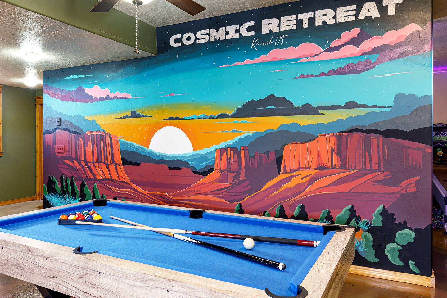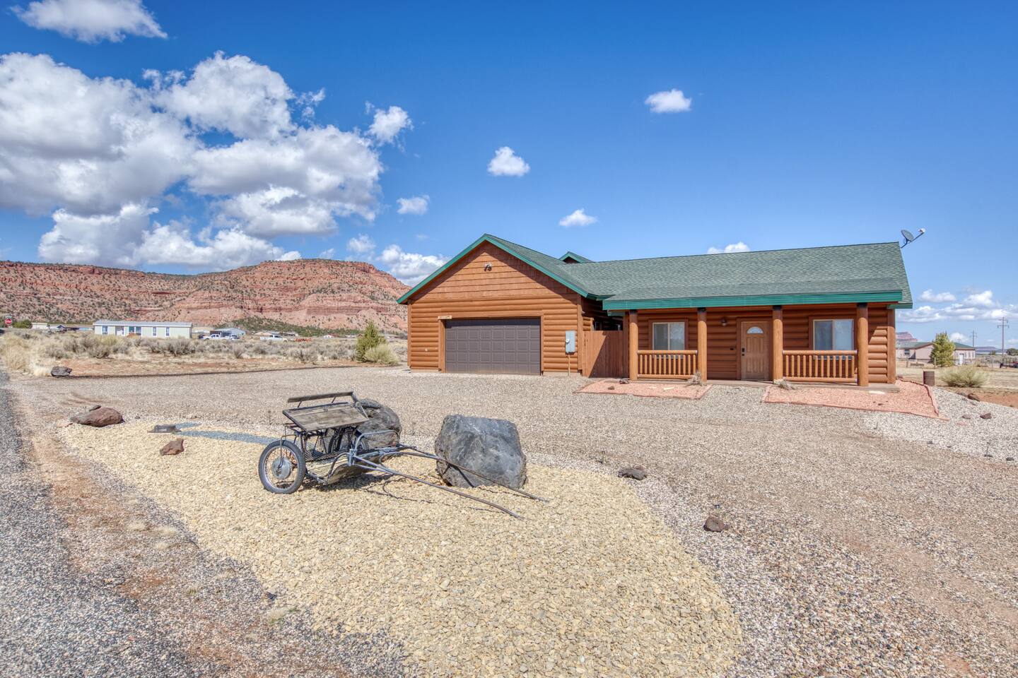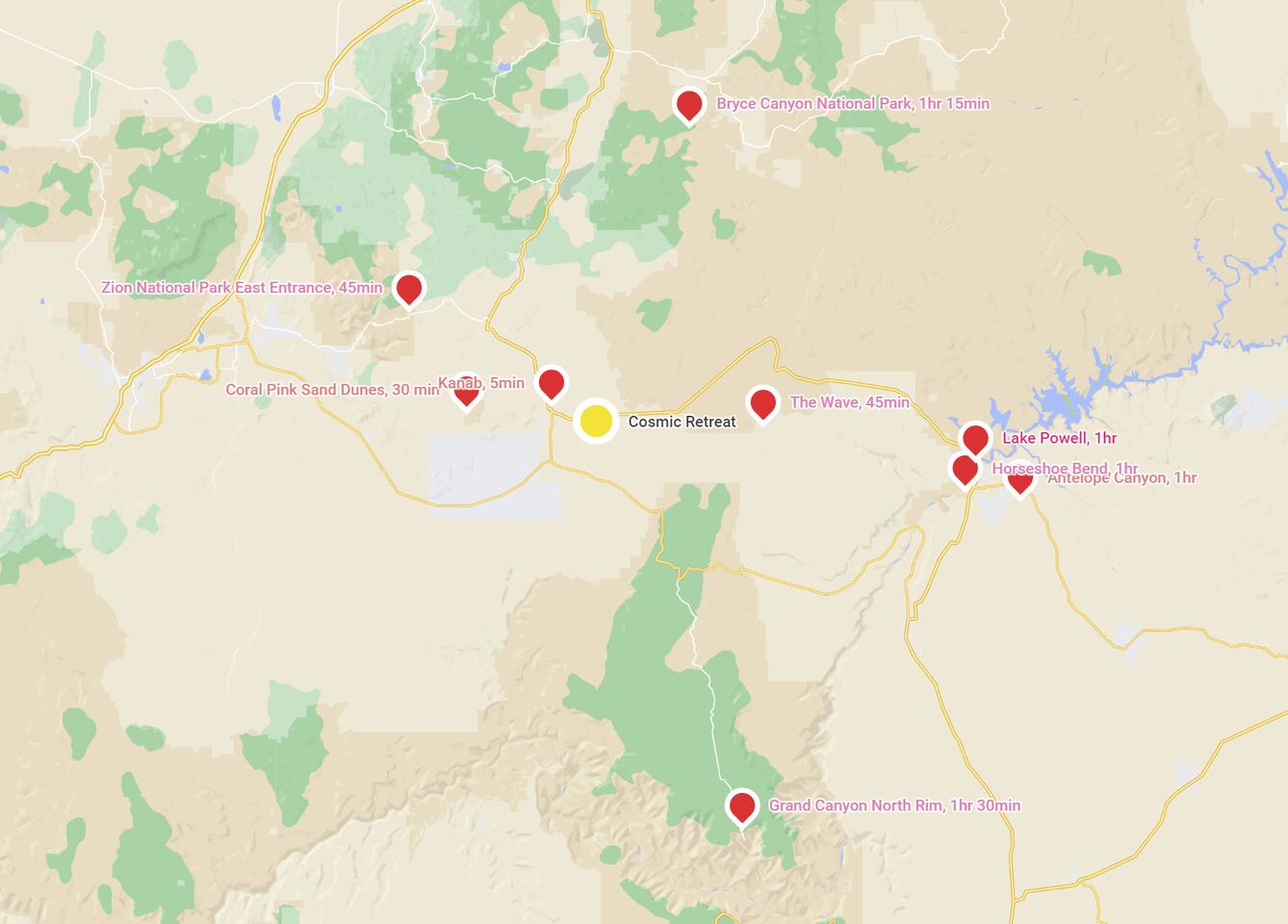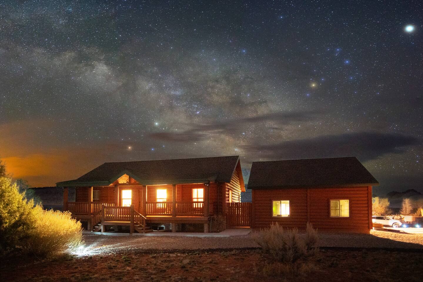 Centrally located, less than 90 min to Zion, Bryce Canyon, Grand Canyon, Coral Pink Sand Dunes, Lake Powell, Antelope Canyon, Horseshoe Bend. Just a straight shot down Hwy-89 from House Rock Valley Rd and The Wave. Sleeps 20! This listing includes two units side by side for a total of 6 bedrooms, 4 bathrooms, 20 guests. Cosmic Retreat - 4br main cabin with arcade. Cosmic Casita - 2br casita. Plenty of parking for trailers, RVs, and all your toys!