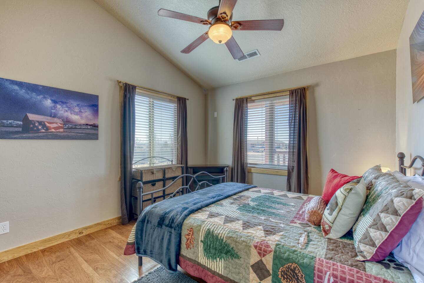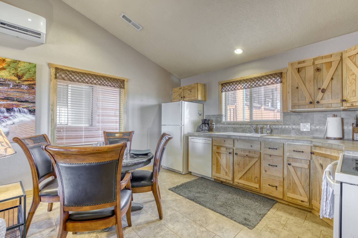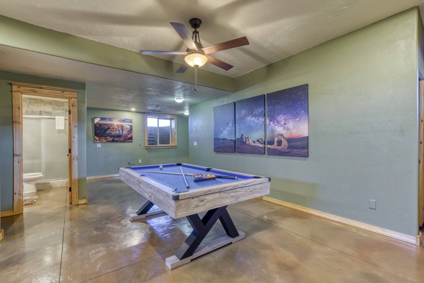 Enjoy world class starry night skies just 7 miles from downtown Kanab. Zion - 1 hr Bryce - 1.5 hrs Grand Canyon North Rim - 1.25 hr Lake Powell/Antelope Canyon/Horseshoe Bend - 1.25 hr Enjoy a hike during the day and then relax at night while the kids play in the arcade or on one of the game consoles. Tastefully decorated with my own Fine Art Photography prints of the area. The property is 3 acres and contains a larger cabin, and a 2br Casita, separated by a garage in between. Please note that garage access is typically not included as we use that for storing cleaning supplies, but arrangements can be made for use if you contact me. Pets are allowed but require an additional $70 fee per pet for cleaning. Please Let me know after booking if you are planning on bringing your pet along! Cabin has an external video doorbell. THE CABINS: Flat-screen Smart TV, hardwood floors, high ceilings, electric fireplace, ceiling fans, washer/dryer, fast WiFi KITCHEN: Fully equipped, blender, dishware and flatware, dishwasher, drip coffee maker, toaster, propane grill, refrigerator, oven, stove, microwave